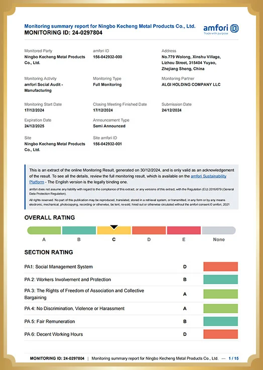 Захваљујући висококвалитетним производима и услугама, компанија је стекла добру репутацију на тржишту. У будућности, Нингбо Кецхенг Метал Продуцтс Цо., Лтд. ће наставити да се придржава професионалних и иновативних концепата, стално побољшава квалитет производа и нивоа услуга и пружа купцима боље производе.