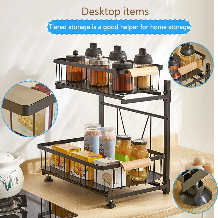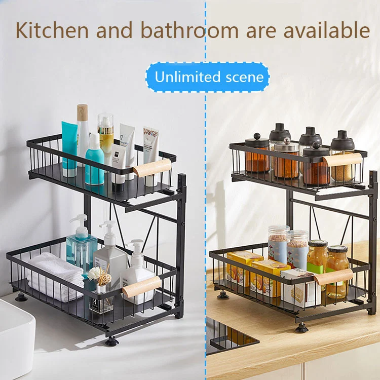 2. Додавање додатака за побољшање текстуре: Наши дизајнери су додали дрвене ручке као додатке како би цео производ учинили занимљивијим. Када се повуче, има пријатан осећај, а на дно корпе се додаје додатни папир за облагање како би се спречило клизање ситних предмета. Висина основних ногу се такође може подесити. Ако се користи у купатилу, нема потребе да бринете да ће постављени предмети доћи у контакт са водом на радној површини.