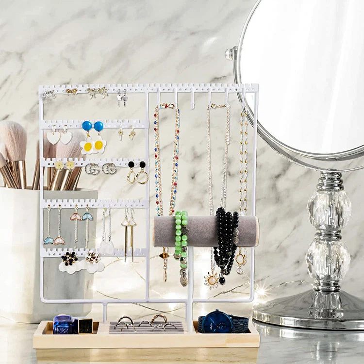 У међувремену, овај вертикални организатор накита са кукама направљен је од комбинације металних и дрвених материјала, са висококвалитетном и изузетном текстуром. Проширена база чини мању вероватноћу да се преврне. Уз то, накит се неће хаотично гомилати нити га је тешко пронаћи, а избегава се и проблем запетљавања и чворова огрлица.